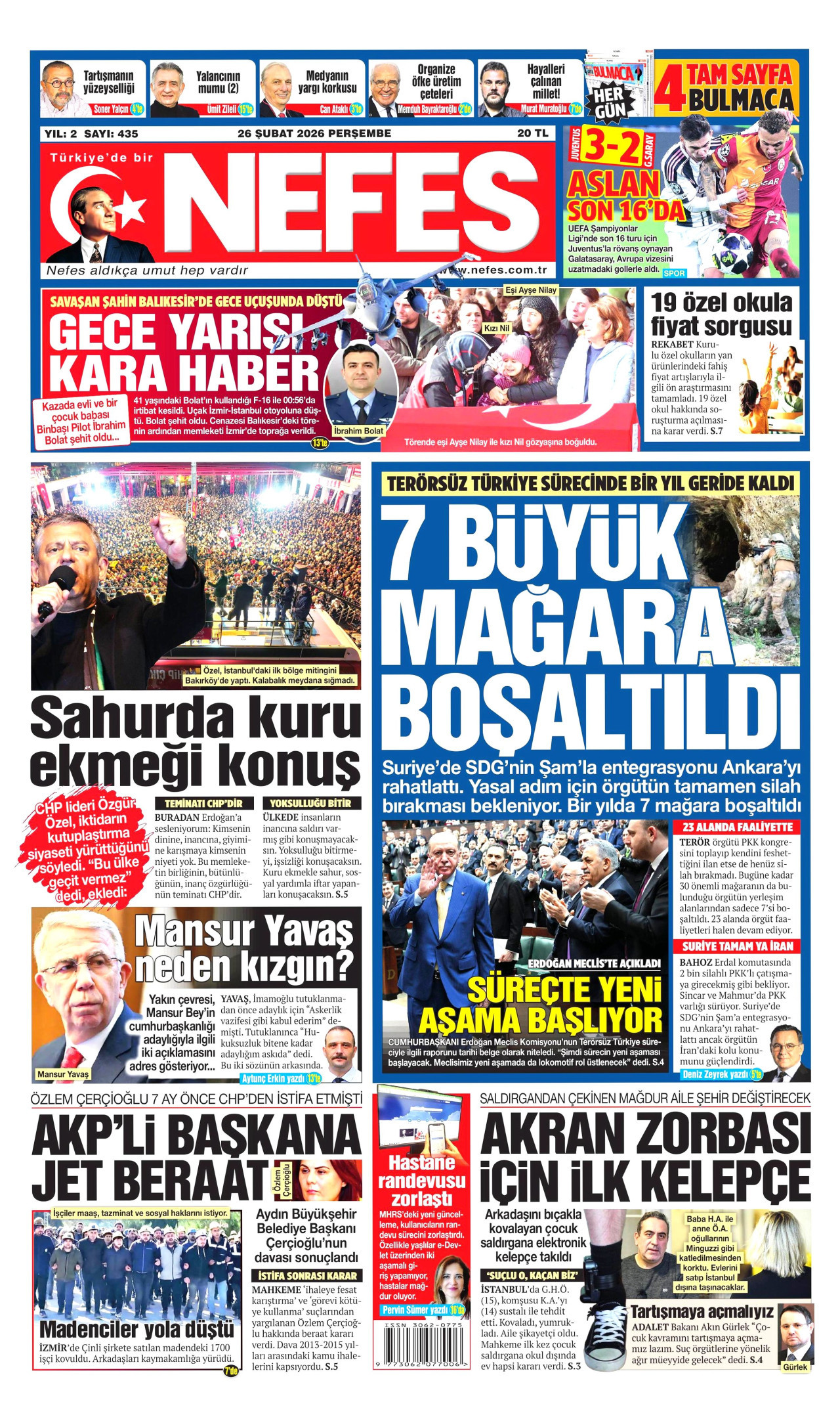 NEFES Gazetesi 26 Şubat 2026, Perşembe Günü Manşeti
